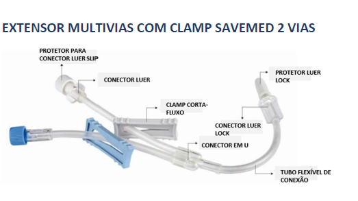 Item incluso: 01 Extensor para equipo multivias, duas vias luer lock com clamp estéril 01 unidade MEDIX.